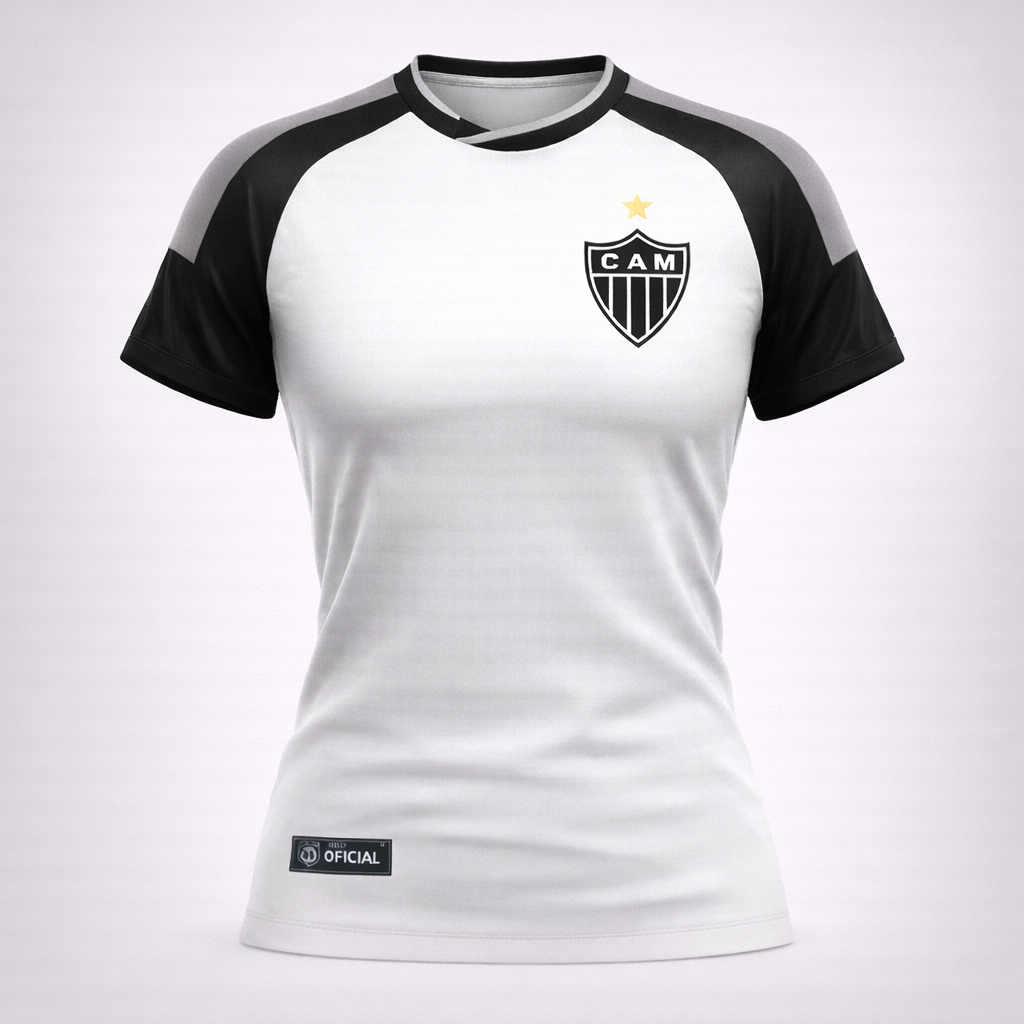 O branco puro serve de base para os detalhes dourados que representam o brilho e as conquistas do Atlético Mineiro ao longo de sua gloriosa história. O escudo bordado em alto relevo no peito reforça o orgulho de vestir o manto, com acabamento impecável que valoriza a tradição e a força da torcida.