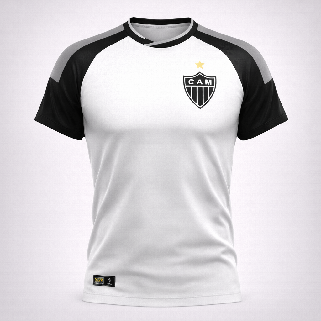 O branco puro serve de base para os detalhes dourados que representam o brilho e as conquistas do Atlético Mineiro ao longo de sua gloriosa história. O escudo bordado em alto relevo no peito reforça o orgulho de vestir o manto, com acabamento impecável que valoriza a tradição e a força da torcida.