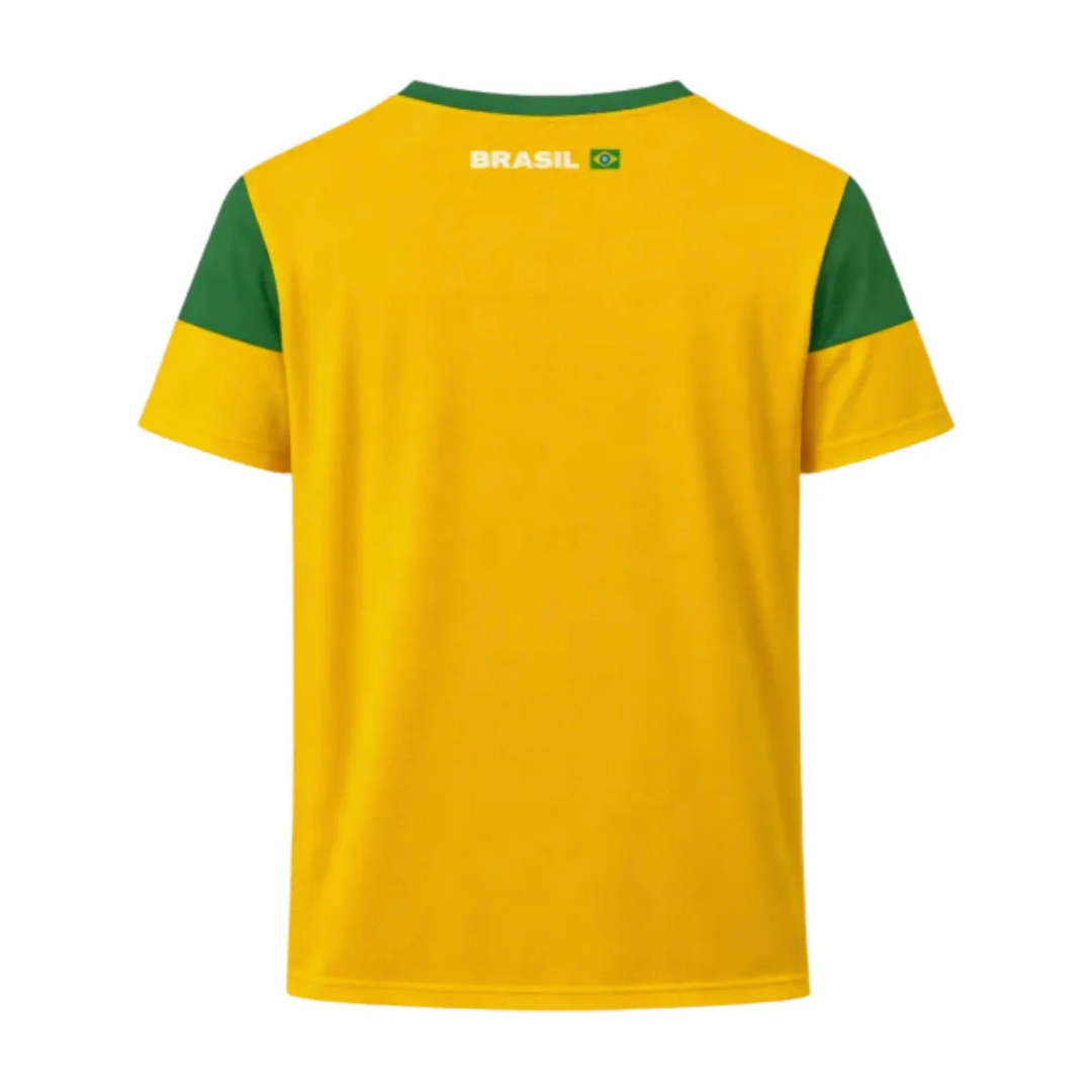 A camisa Brasil Amarela é feita com tecidos de alta qualidade, proporcionando conforto e durabilidade aos jogadores. Ela possui um design moderno e elegante, com detalhes em verde, uma das cores da bandeira brasileira.