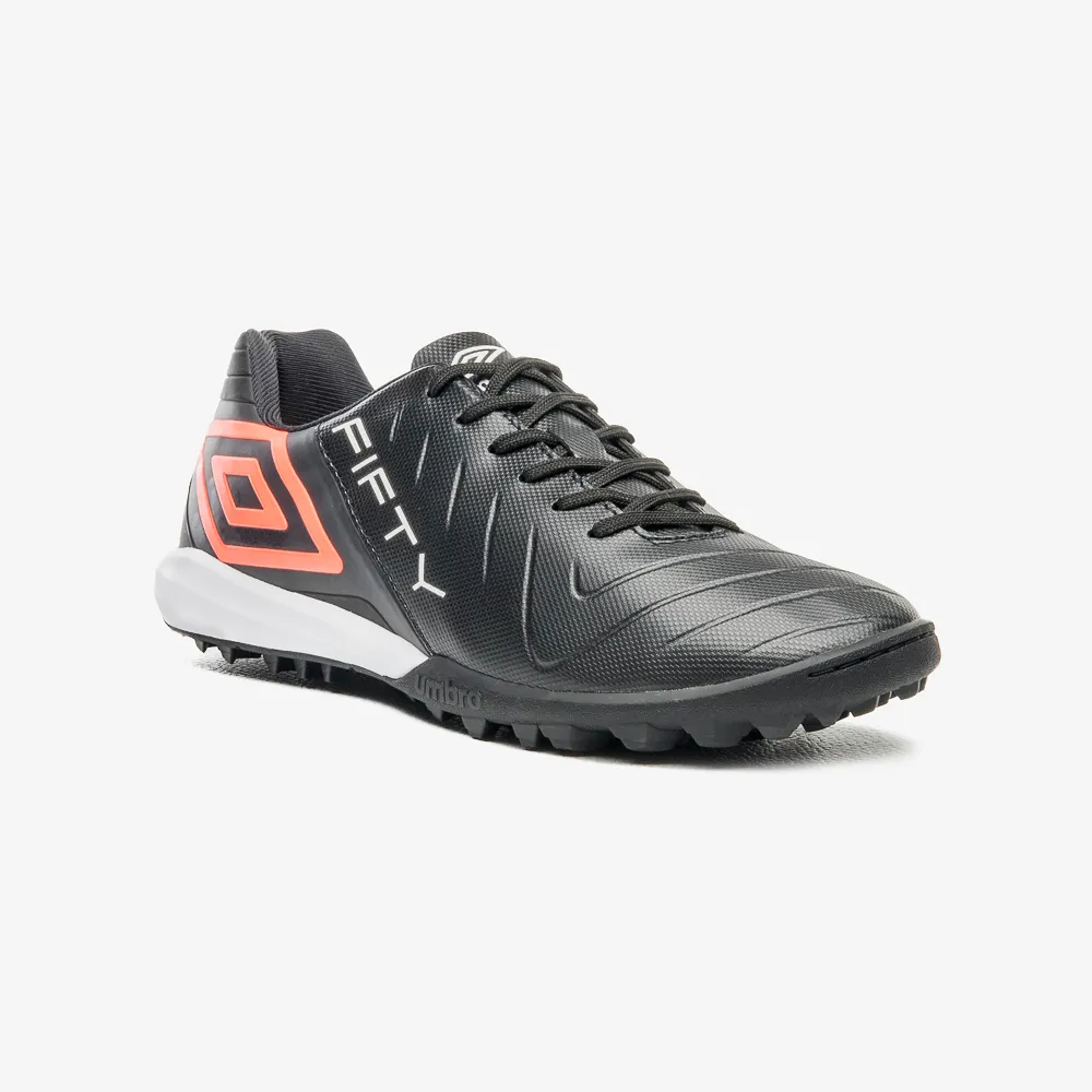 A Chuteira Society Umbro Fifty VI oferece conforto e controle para jogadores iniciantes e intermediários. Seu cabedal laminado combina texturas diferenciadas em alta frequência para melhor grip e domínio da bola. A boca deslocada para o lado externo garante ajuste preciso e um chute mais eficiente. O forro traseiro em mesh com acabamento luvado no colarinho aumenta a resistência. Conta com entressola em EVA injetado e solado em TPU com travas em chevron.