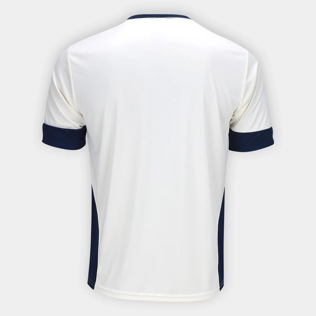 A camisa Cruzeiro Dry Branca Escudo Masculina também conta com detalhes em azul, cor característica do clube. Esses detalhes estão presentes nas mangas e na gola da camisa, adicionando um toque de estilo e sofisticação ao visual.