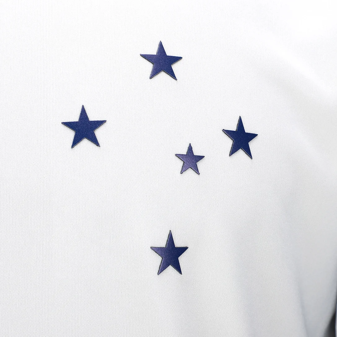 O escudo do Cruzeiro é o grande destaque dessa camisa. Localizado no lado esquerdo do peito, o escudo mostra toda a tradição e história do clube. É um símbolo de orgulho para todos os torcedores.