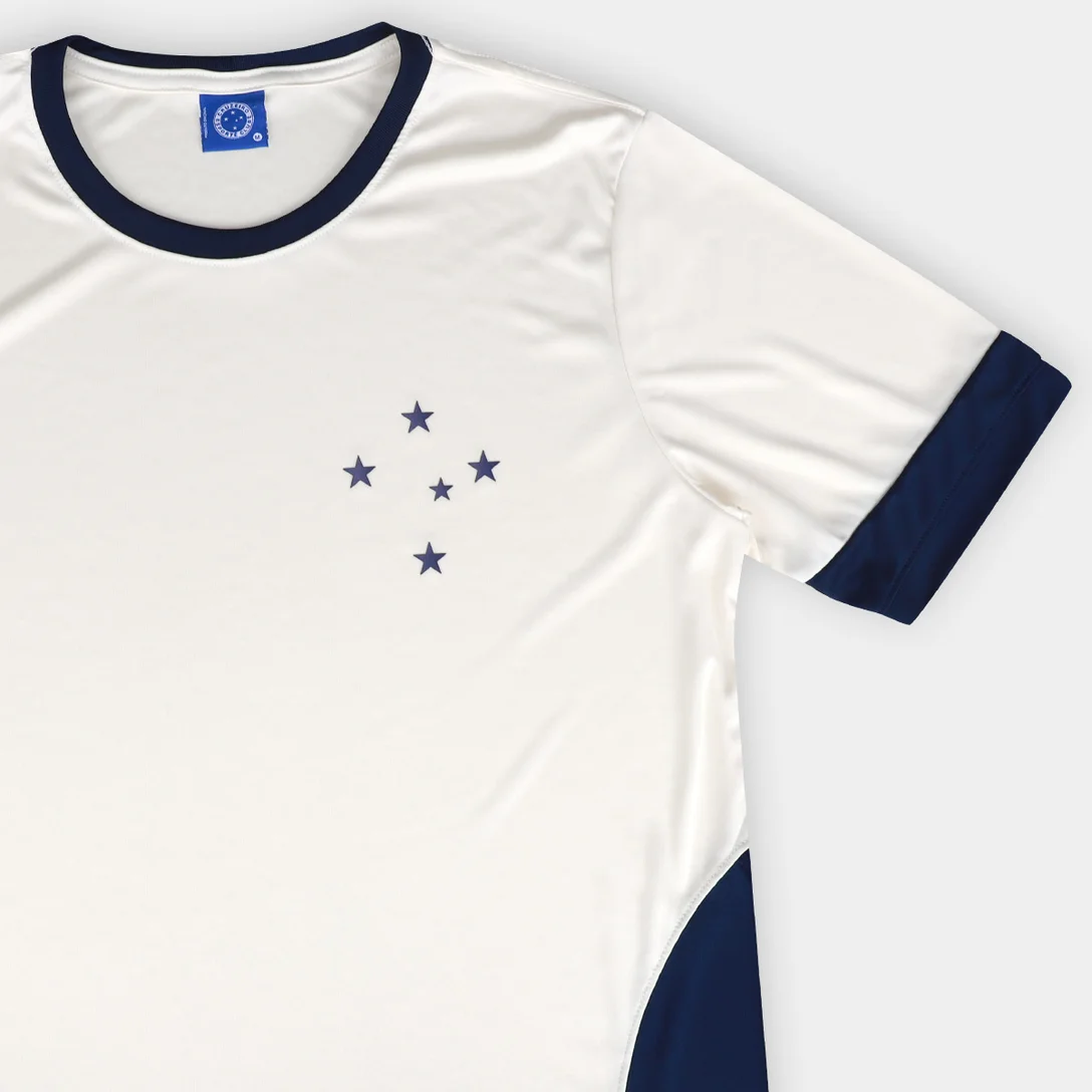 A cor branca predominante da camisa transmite paz e pureza, representando a identidade do Cruzeiro. Ela combina facilmente com diferentes peças de roupa e pode ser usada em diversas ocasiões, seja para ir ao estádio apoiar o time ou para sair com os amigos.