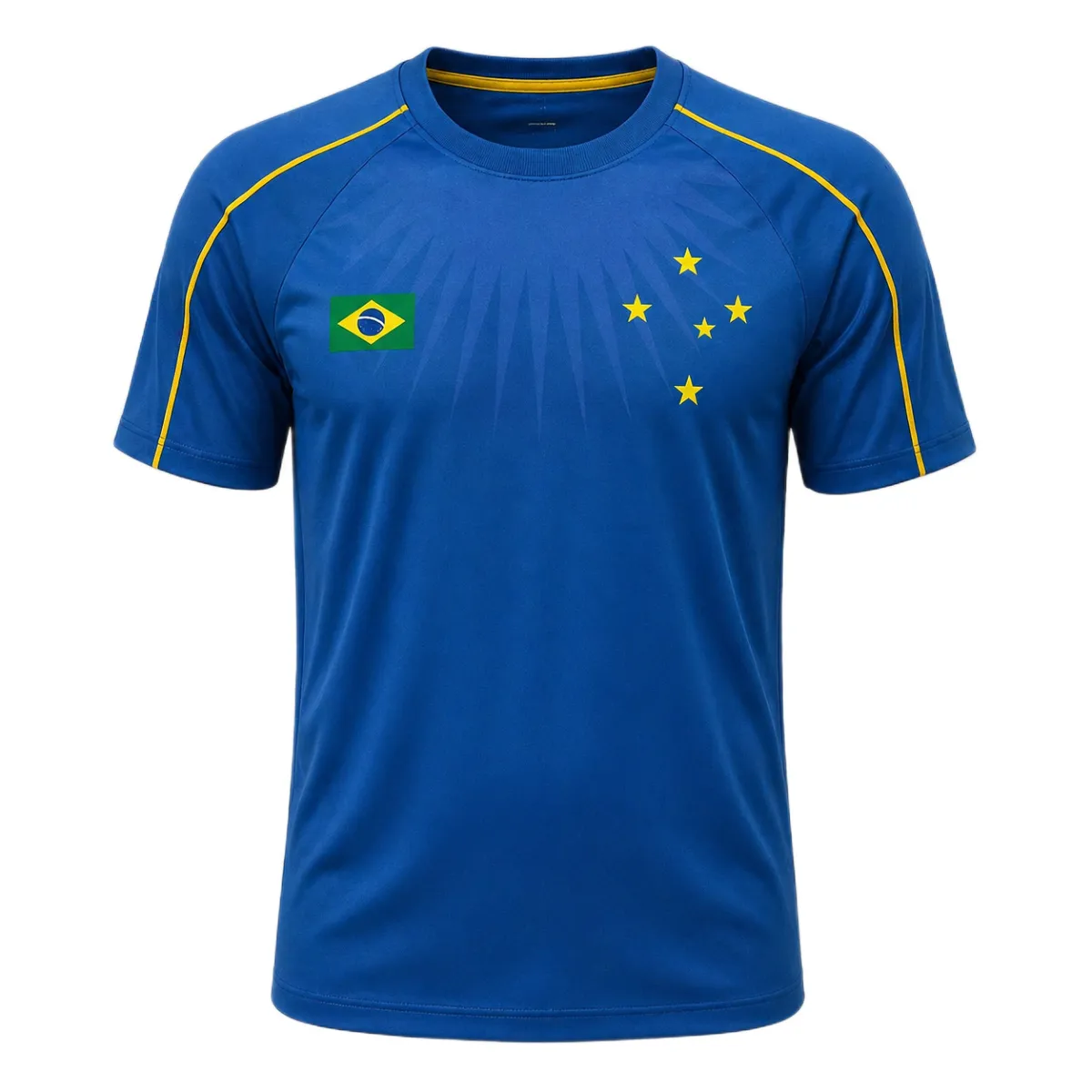 Estilo, identidade e paixão se encontram nesta camisa exclusiva que une a tradição do Cruzeiro com o orgulho nacional do Brasil. Com design moderno e marcante, o modelo traz como destaque a clássica constelação do Cruzeiro do Sul estampada no peito, acompanhada da bandeira do Brasil, criando uma composição única e cheia de significado.
