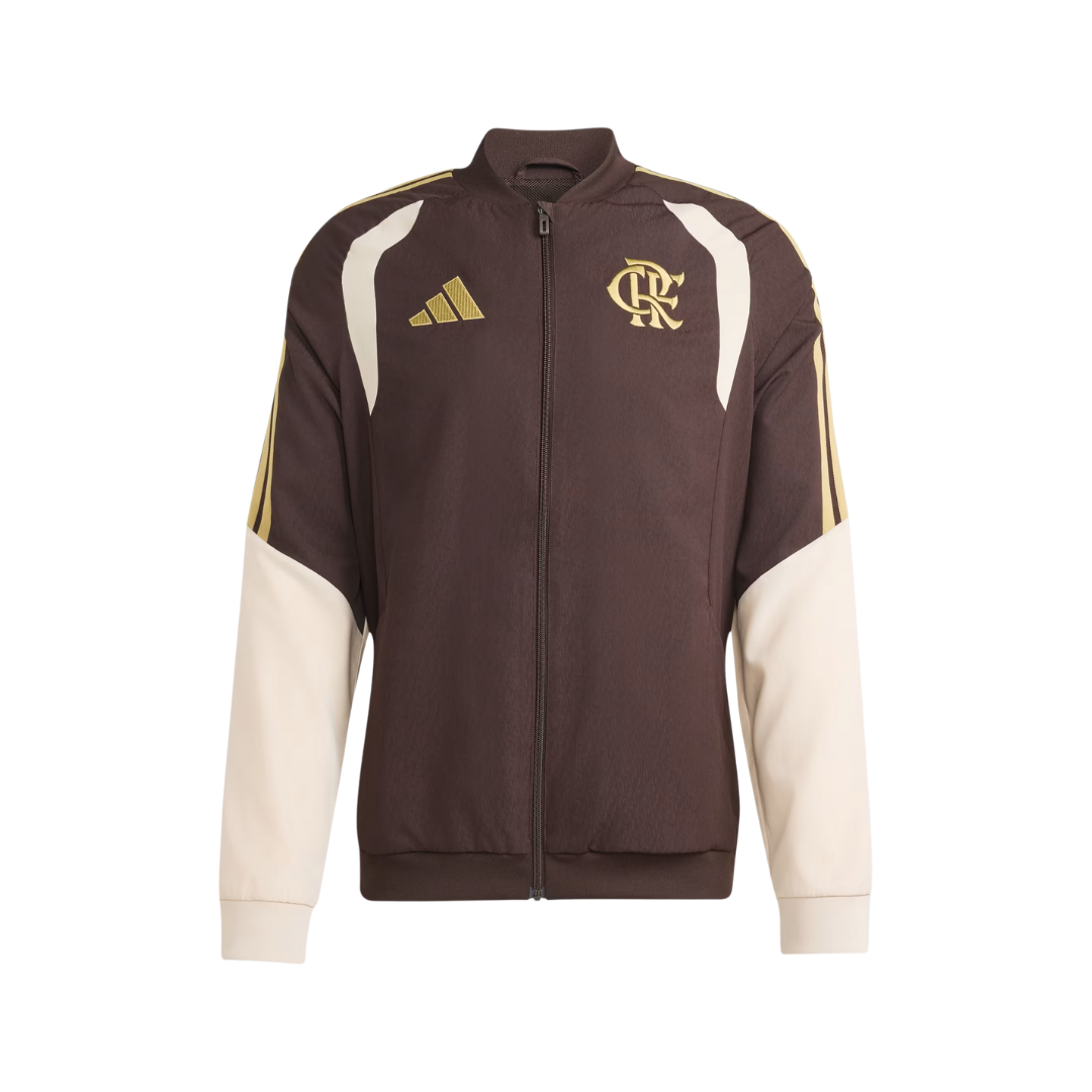 Entre em campo de futebol com confiança usando a Jaqueta CR Flamengo TIRO 26 Competition Presentation. Criada para aqueles que vivem e respiram futebol, esta jaqueta incorpora o espírito do jogo com um design moderno que reflete o DNA do futebol da adidas. Fabricado com materiais de alta qualidade, a modelagem justa valoriza a silhueta, permitindo movimentos livres para melhorar seu desempenho e estilo dentro e fora do campo de futebol. O material costurado leve ajuda a manter você fresco e confortável durante os aquecimentos, enquanto o fecho de zíper completo proporciona fácil acesso para entrar e sair. Use esta jaqueta leve para treinar ou quando você estiver torcendo pelo seu time. Com a marca icônica da adidas, incluindo o bordado em zigue-zague e a fita de malha Três Listras, ele logo se tornará seu item básico favorito do guarda-roupa.