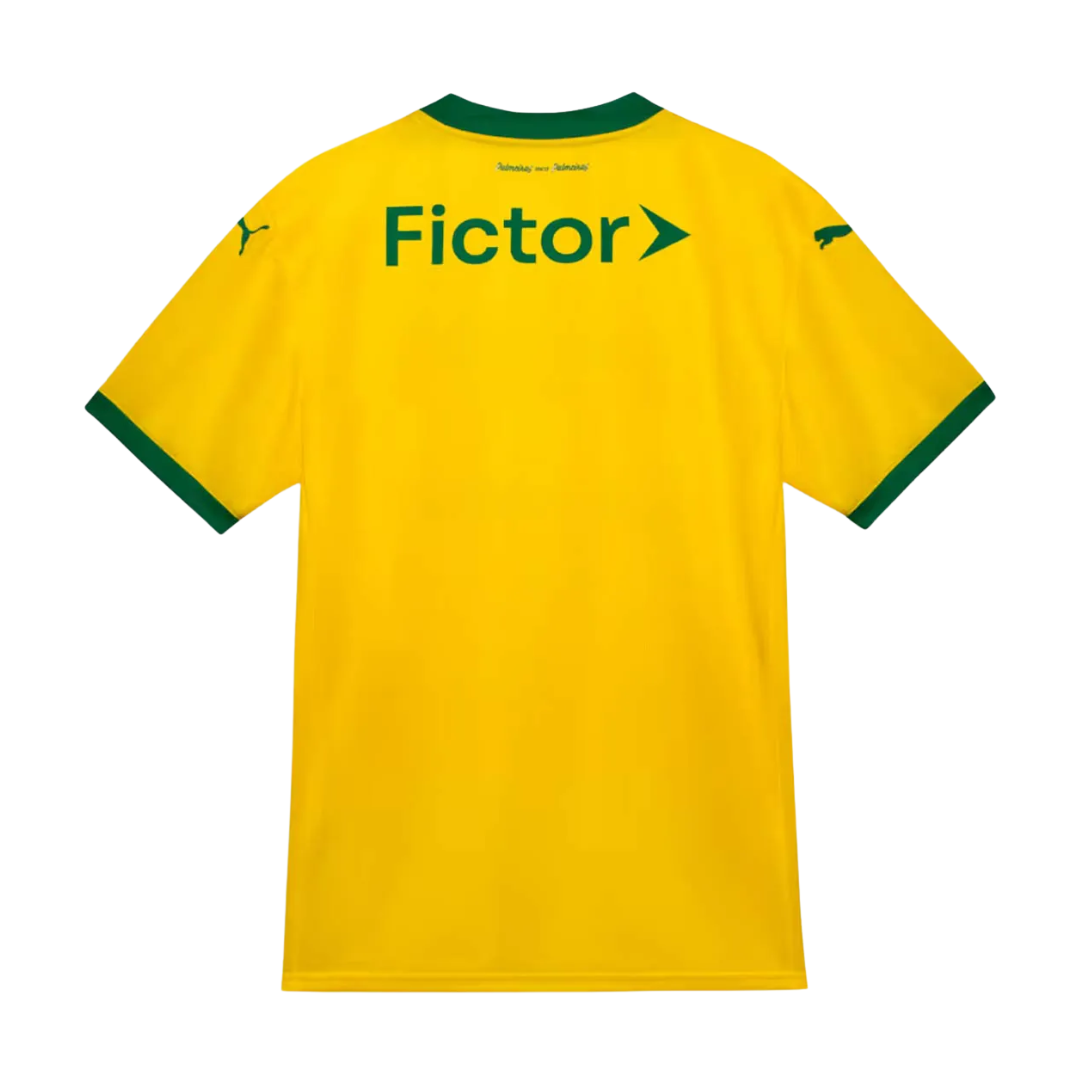 É o Palestra que nos torna família – uma frase que exalta o sentimento inexplicável que é fazer parte da família Palmeiras. Celebrando os 110 anos do clube, seu legado e tradição, exaltamos o sentimento de pertencimento, luta e amor compartilhado por milhões de palmeirenses. Pela primeira vez na história do clube a nova coleção apresenta a cor dourada que remete as inúmeras taças levantadas pelo Maior Campeão do Brasil. No modelo torcedor apresentamos um material leve e respirável para garantir conforto na hora de torcer, além do escudo do clube e da PUMA bordados.