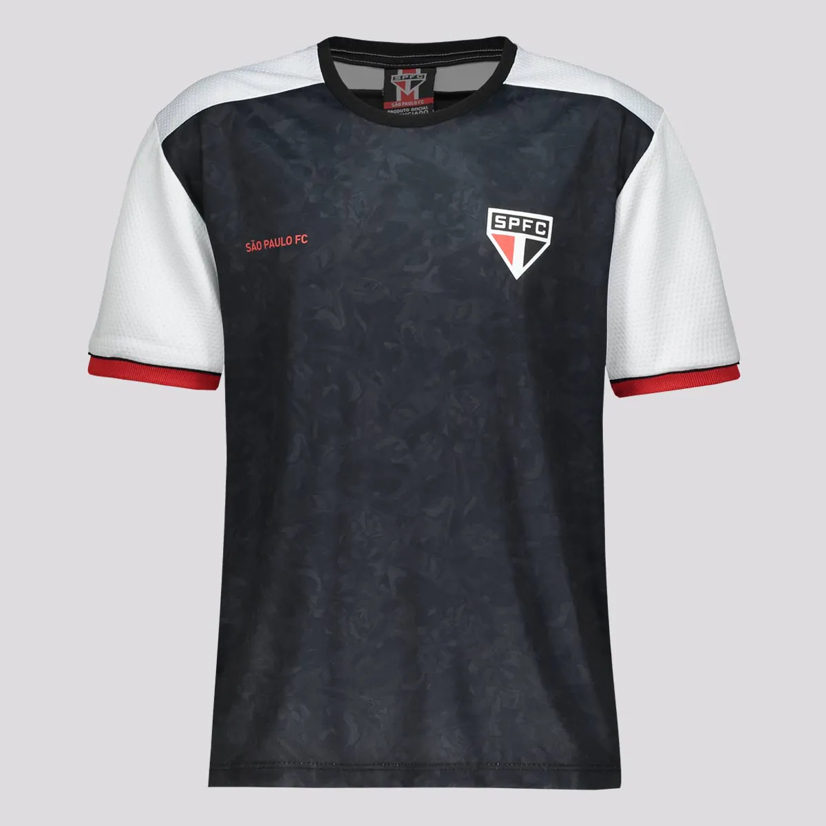 Camiseta infantil em Dry Max que absorve e elimina o suor, garantindo melhor transpiração. A peça possui gola careca, viés na barra, punho com vivo contrastantes e silk vazado com alusão aos cantos da torcida.